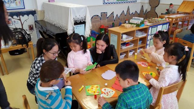 随后,新葡的京官网志愿者结合专业语言特点,教小朋友们唱起了英文儿歌《Old McDonald had a farm》,小朋友们跟着音乐兴奋地合唱,看着志愿者手里的图画,模拟图画中小动物们的声音。紧接着大家一起合唱了《如果感到幸福你就拍拍手》,小朋友们一起拍手、跺脚、伸腰、挤眼、耸肩,气氛十分活跃。