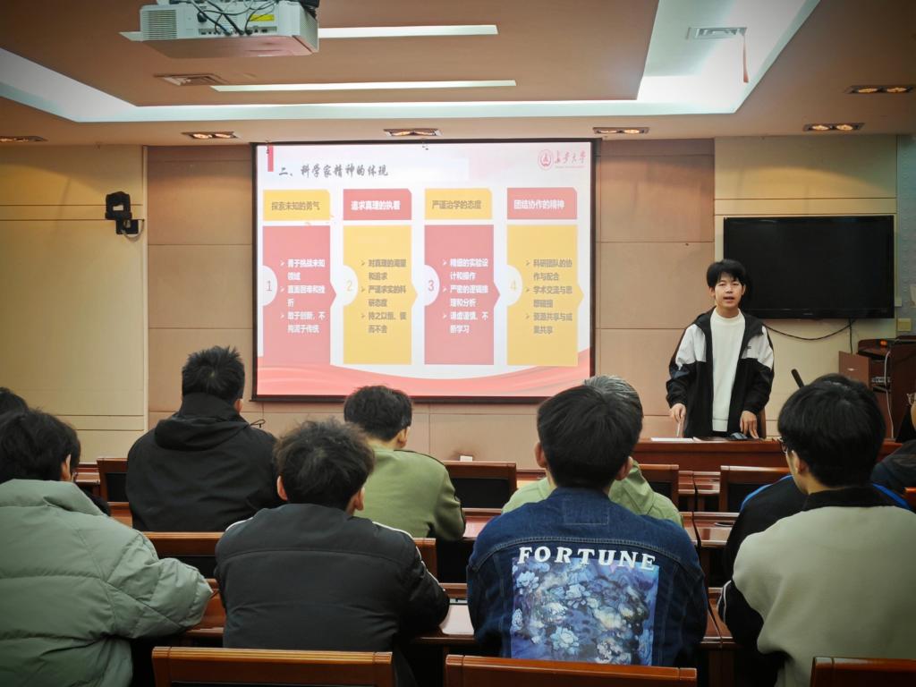 为深入学习贯彻习近平新时代中国特色社会主义思想和党的二十届三中全会精神,大力弘扬科学家精神,涵养优良学风。Beat365唯一官方网站2024级研究生第一党支部于11月15日下午在南校区北院交流中心第一会议室开展“弘扬科学家精神,争做新时代追梦人”主题党日活动。研究生辅导员王佩佩及全体党员参加活动,活动由党支部书记张兴浩主持。