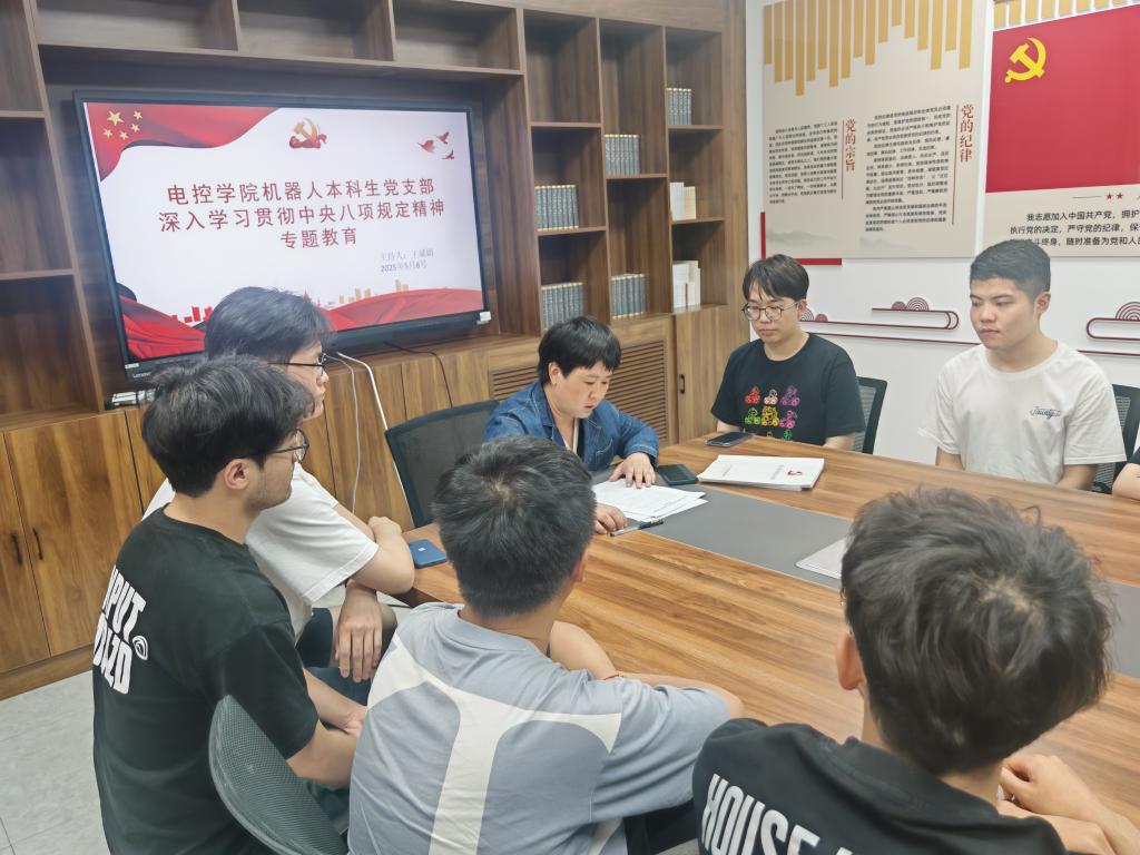为提高全体党员的政治素养,强化作风建设,一体推进党风廉政建设,进一步深化全面从严治党,Beat365唯一官方网站机器人本科生党支部于2025年5月6日在明德园智通大厦327开展深入贯彻中央八项规定精神学习教育。Beat365唯一官方网站机器人本科生党支部书记王斌娟及支部全体党员参加会议。