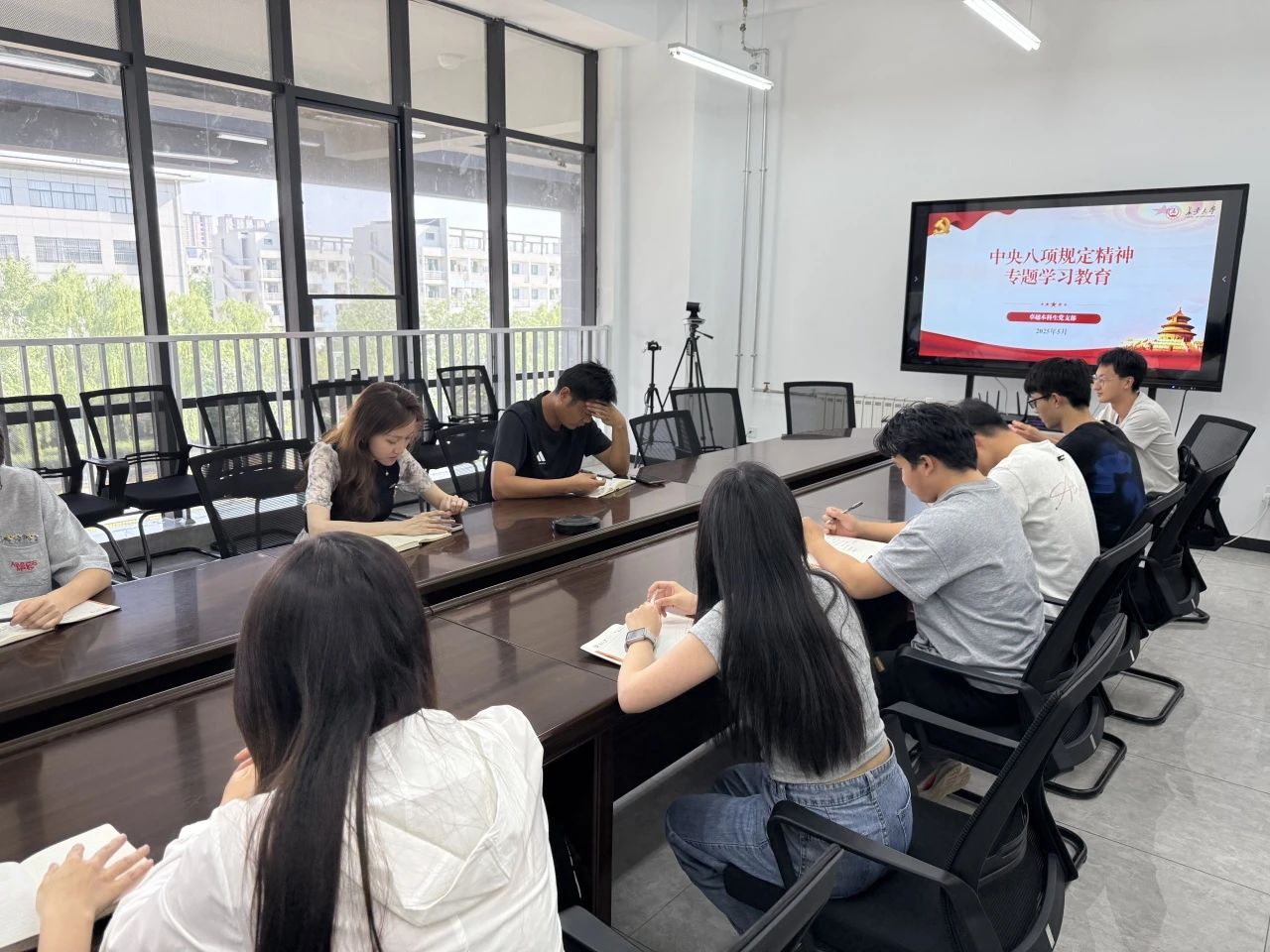 5月12日,Beat365唯一官方网站卓越本科生党支部于学院319会议室开展深入贯彻中央八项规定精神学习教育,党支部书记张馨月、党支部副书记刘平利及全体学生党员参会。