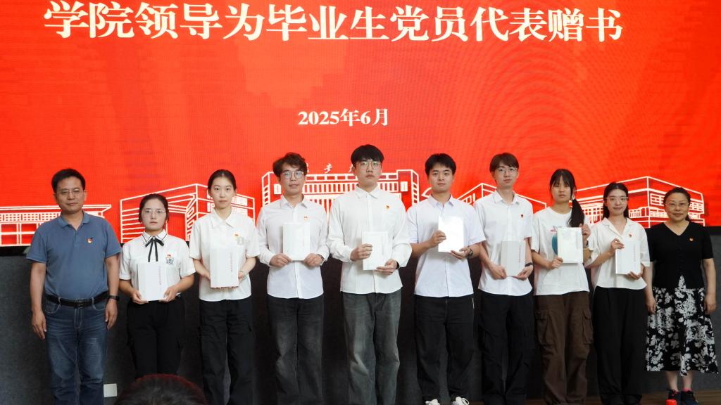 活动最后,学院领导为毕业生党员代表赠书并合影留念。