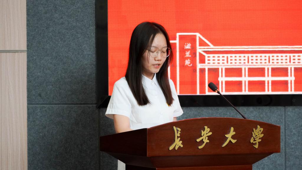2021级本科生霍玉凡代表全体毕业生党员承诺,要坚守初心,筑牢信仰之基;矢志奋斗,勇担时代之责;以身作则,彰显先锋本色。
