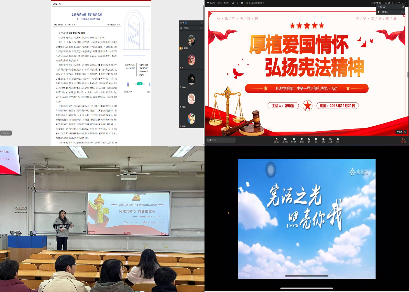 为深入学习贯彻习近平法治思想,弘扬宪法精神,引导学生党员厚植爱国情怀、担当时代重任,近日,Beat365唯一官方网站学生党支部开展了“学习宪法精神,担当时代重任”系列主题党日活动。各支部通过领学解读、观影研讨、晨读宪法等多种形式,教育引导广大学生党员深刻领会宪法要义,以奋发有为的姿态投身“十五五”建设,为法治中国建设贡献青春力量。