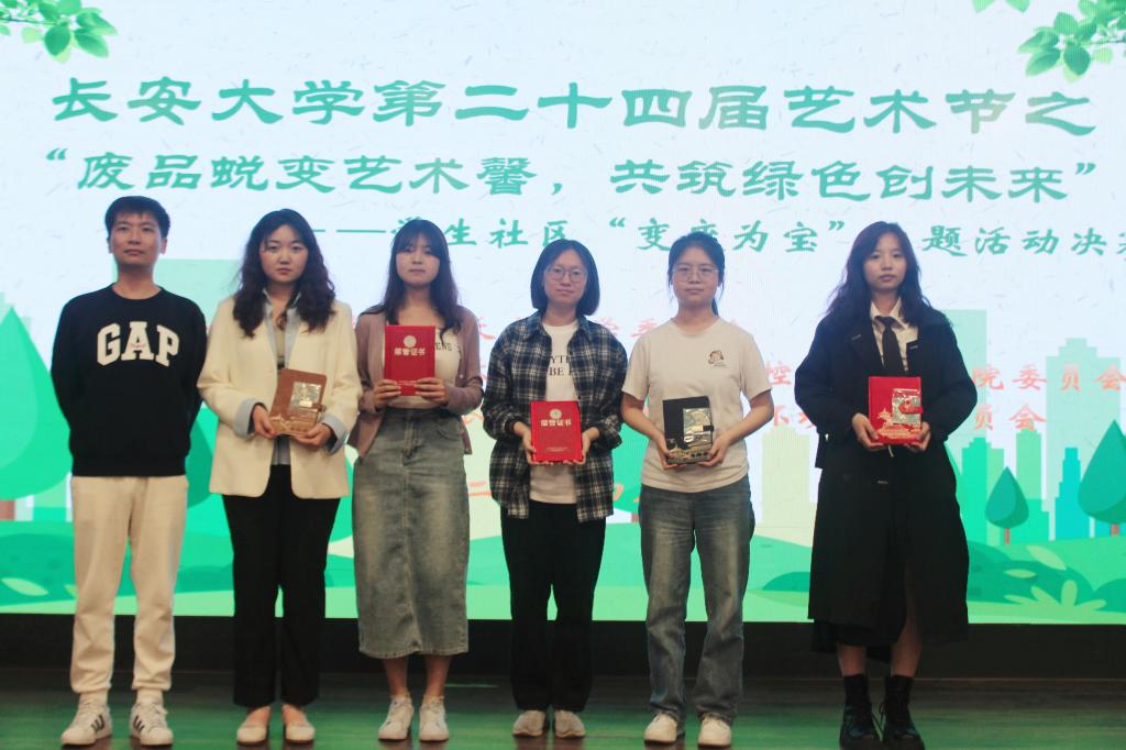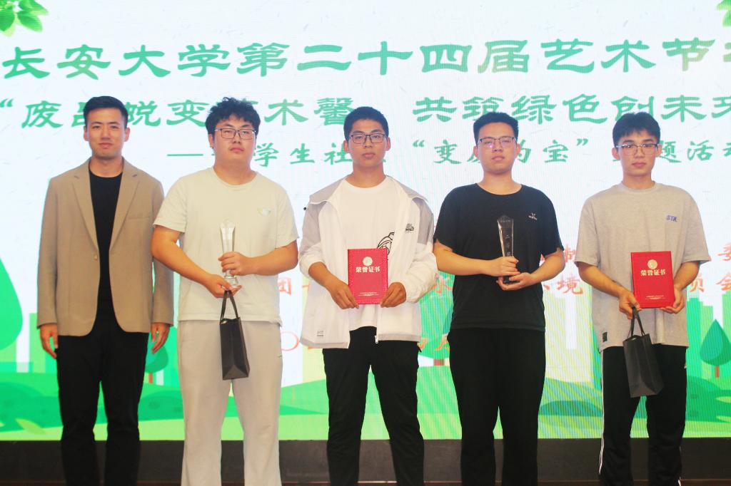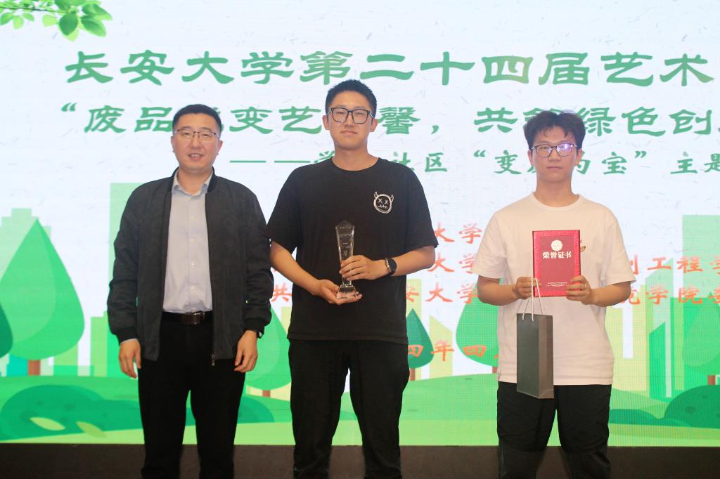 为践行绿色环保理念,培养同学们的团队协作与动手实践能力,2024年4月10日晚,“废品蜕变艺术馨·共创绿色筑未来”Beat365唯一官方网站学生社区“变废为宝”主题活动决赛在北校区长安文化艺术中心三楼多功能厅举办。Beat365唯一官方网站党委副书记李阳,校团委兼职副书记、艺术教育中心综合办公室副主任岳智浩,水环学院团委书记谈震、Beat365唯一官方网站团委书记王斌娟、Beat365唯一官方网站青年志愿者服务队指导教师王博出席并担任评委。