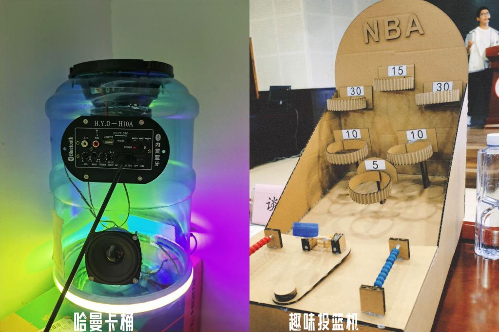 经过初赛选拔,全校共有12支队伍晋级决赛,决赛分为作品讲解、评委提问、知识抢答等环节。参赛队伍分别从作品立意、所用材料、创作过程、实用性能等方面进行展示讲解,评委们现场提问并点评。在环保知识抢答环节,参赛选手踊跃参与,现场气氛热烈。本次参赛作品融生态性、环保性、实用性与科技性于一体,同学们将所学专业知识用于作品创作之中,通过科技创新等手段赋予废旧物品新的生命,既减少了环境污染,又实现了资源的循环再利用,作品特色鲜明、亮点突出。经过激烈角逐,作品《哈曼卡桶》荣获一等奖,作品《垃圾箱》、《趣味投篮机》荣获二等奖,作品《扫地车》、《苏州园林》、《羽毛球灯》荣获三等奖。