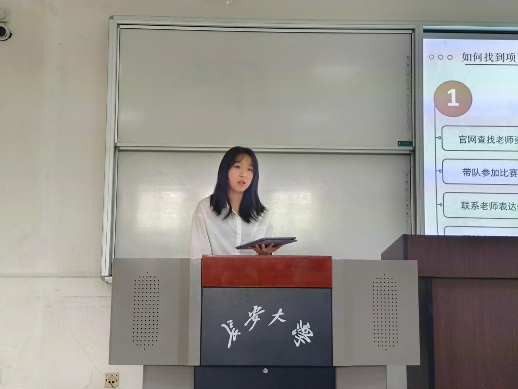 “长大·卓越奖·班级引领之星、竞技之星提名奖”获得者张诗媛分享了自己在科研竞赛、班级建设及学习生活中的成长历程和心得体会,鼓励学弟学妹们在大学期间要对每个时期的学习、竞赛、学生工作等有所规划,抓住机遇、克服困难,从自身专业出发,潜心研究、不断探索。