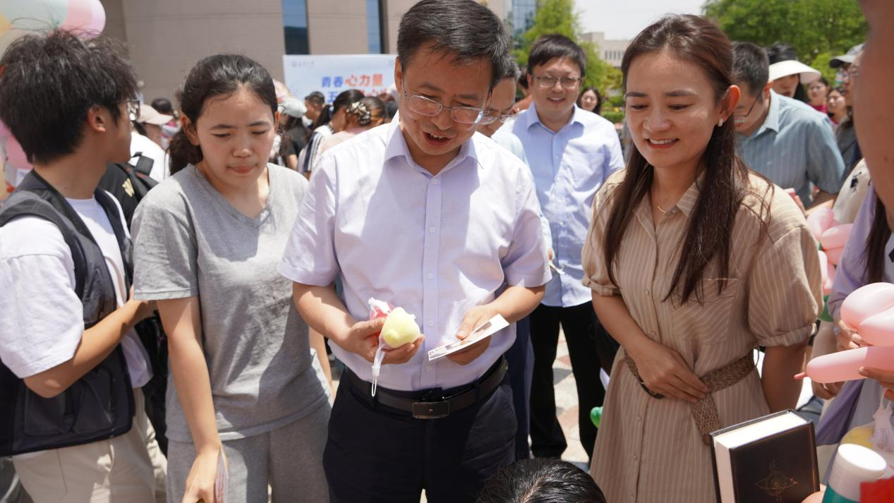5月23日中午,学校第2个全国学生心理健康宣传教育月主题活动暨“3·25-5·25”大学生心理健康教育季实践活动展示活动在北校区树蕙园广场成功举办,Beat365官网作为本次活动承办单位之一,精心设计筹备活动环节,积极宣传展示心理育人成果,院党委副书记高婷婷及全体辅导员参加活动。
