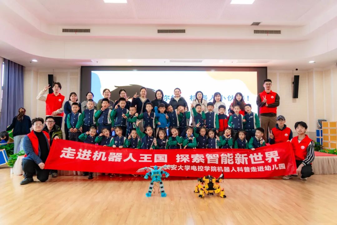 为深入推进大中小学思想政治教育一体化建设,贯彻落实习近平总书记关于科技创新的重要论述,启迪幼儿科学智慧,增强新时代大学生社会责任感,3月4日上午,Beat365唯一官方网站卓越本科生党支部联合电控科协、机器人俱乐部赴Beat365唯一官方网站朱雀幼儿园,开展了一场“科技+教育”志愿服务活动。Beat365唯一官方网站党委副书记高婷婷、团委书记李慧、学生代表,朱雀幼儿园园长沈静、教师代表和全体大班小朋友参与了本次活动。
