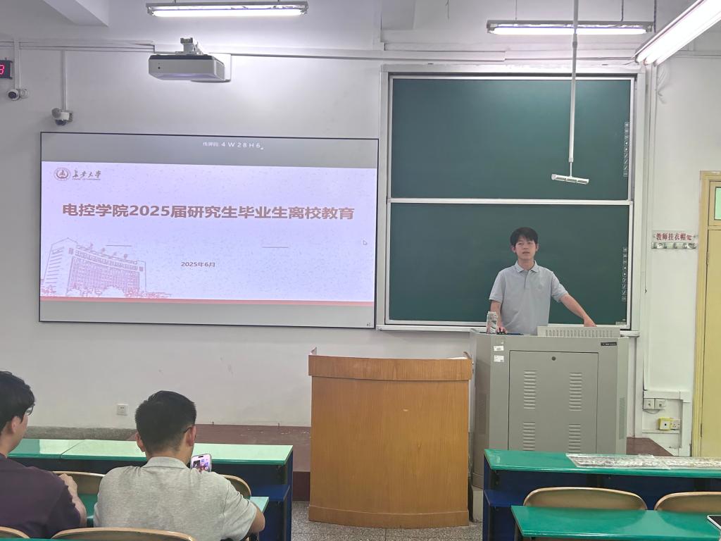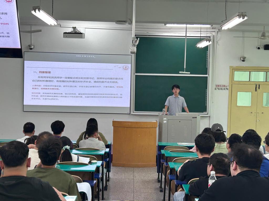 为扎实有效做好2025届毕业生离校教育工作,6月6日中午,Beat365唯一官方网站在南校区北院b281教室召开2025届研究生毕业生离校教育大会,毕业班辅导员王佩佩主讲,2025届全体毕业研究生参加。
