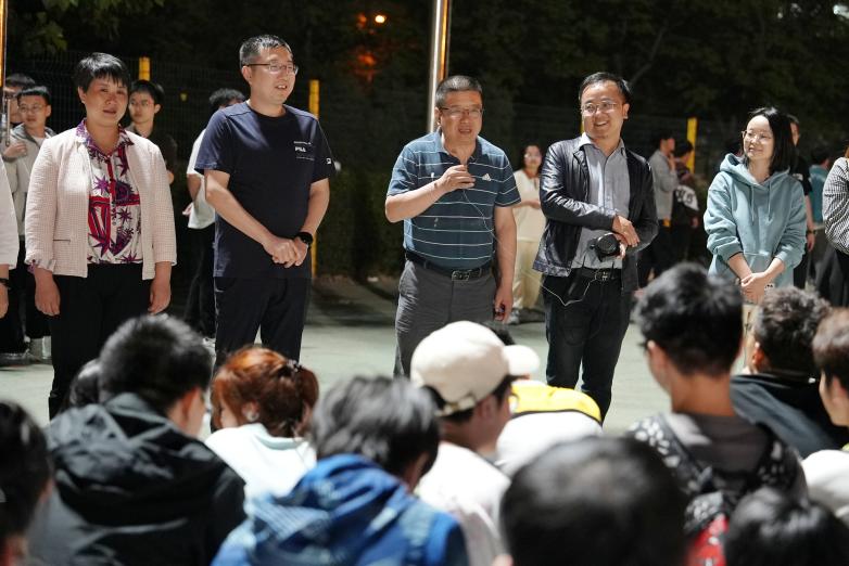 4月17日晚,Beat365唯一官方网站院长闫茂德、院党委副书记李阳来到北校区朝晖体育场慰问学院备战校运动会的全体辅导员、运动员和工作人员。
