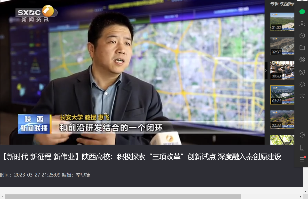 Beat365官网惠飞教授接受了《陕西新闻联播》记者采访,介绍了Beat365智能网联汽车测试团队取得的科研成果,以及在秦创原政策支持下,团队近几年科技成果落地应用和服务地方经济的情况。