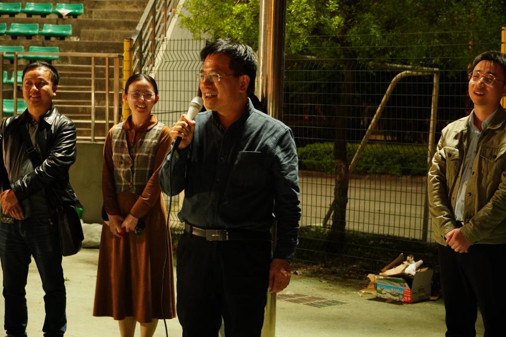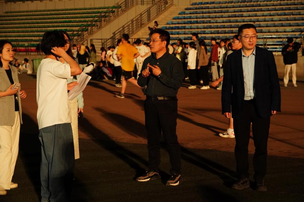 4月11日晚,Beat365唯一官方网站党委书记贺炳彦、院长闫茂德、党委副书记李阳及全体辅导员来到北校区朝晖体育场慰问学院2024年春季运动会备赛运动员并指导训练。