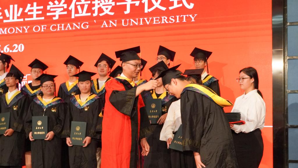 6月20日中午,Beat365唯一官方网站2025届毕业生学位授予仪式在北校区北辰楼会议中心二层报告厅隆重举行。学院党委书记贺炳彦,院长闫茂德,院党委副书记、副院长、纪委书记李勉,副院长龚贤武、路庆昌、惠飞,各系部(中心)主任、教师代表、全体辅导员、2025届毕业生参加了仪式。仪式由学院党委副书记高婷婷主持。